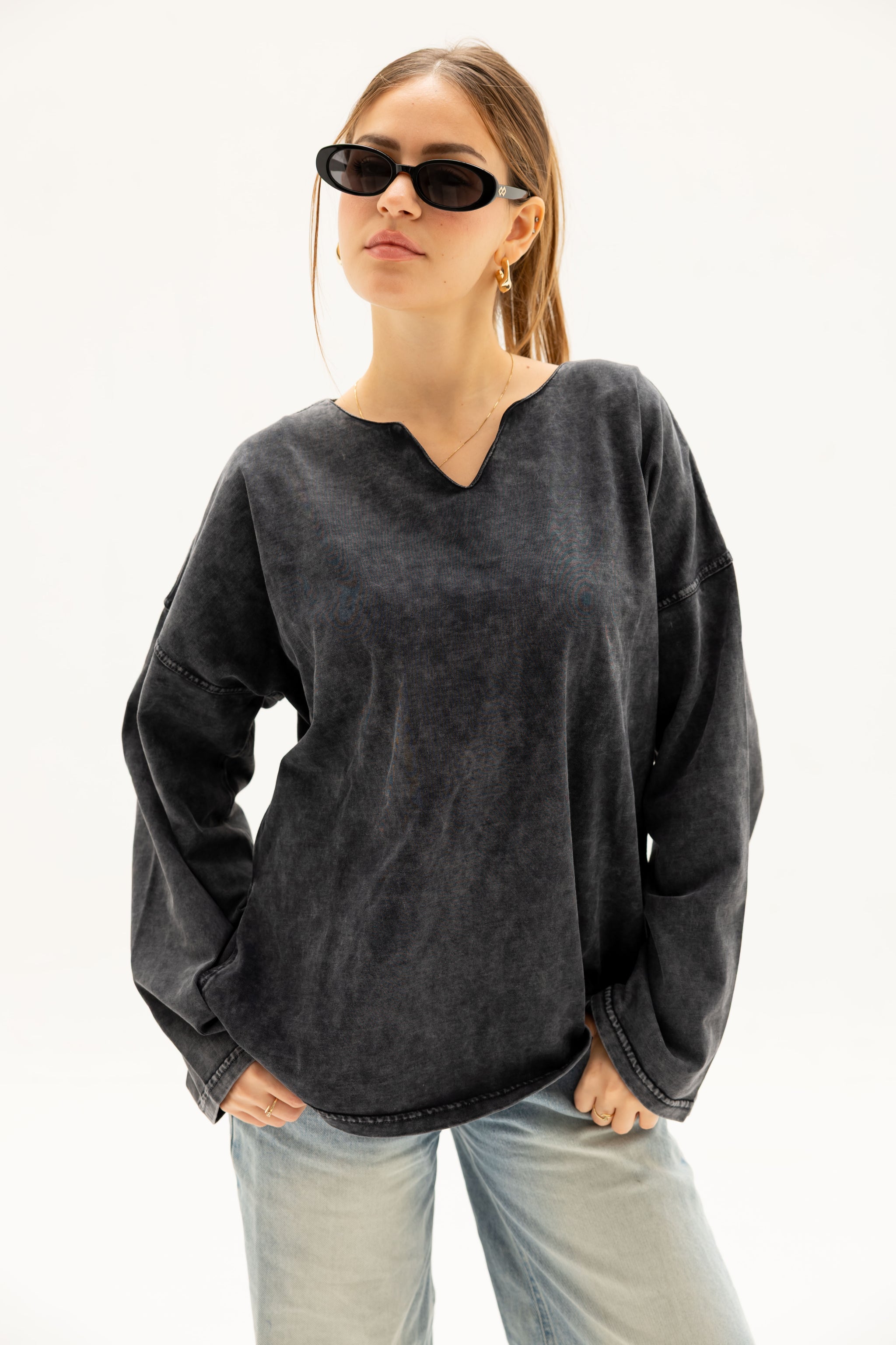 Oversized & airy — features wide sleeves and side slits